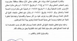 غيل باوزير(حضارم اليوم) خاص أصدر مدير عام مديرية غيل باوزير، الأستاذ سالم عبدالله العطيشي باوزير، تعميماً يقضي بـ منع تعاطي منتجات التبغ في الأماكن العامة ووسائل النقل، استناداً إلى توجيهات محافظ محافظة حضرموت رئيس المجلس المحلي ومذكرات وزارتي الإدارة المحلية والصحة العامة والسكان. ويأتي هذا القرار انطلاقاً من الحرص على …