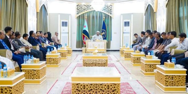 وأعرب الرئيس الزُبيدي في اللقاء عن سعادته بلقاء القيادات الشبابية والحقوقية في المحافظات، مؤكدا أن المجلس الانتقالي الجنوبي يُعوّل على الشباب في مختلف التخصصات، باعتبارهم القوة الواعدة التي يؤمل عليها في صناعة التغيير والإسهام بفعالية في جهود البناء والتنمية في عموم محافظات الجنوب.
