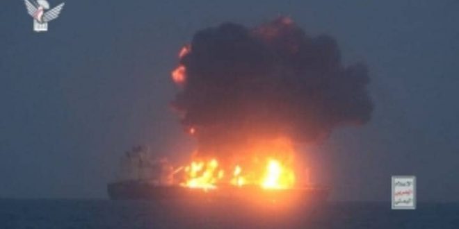 وأصابت ثلاثة مقذوفات الأربعاء ناقلة النفط “سونيون” قبالة سواحل مدينة الحُديدة في غرب اليمن، ما أدى إلى اندلاع حريق على متنها وفقدان قوة المحرّك، بحسب “يو كاي أم تي أو”.