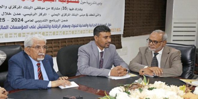 برعاية محافظ البنك المركزي اليمني الأستاذ/ أحمد أحمد غالب اختتمت يوم أمس الخميس الموافق 5 ديسمبر 2024 أعمال ورشة العمل حول (مسئولية الشخص الاعتباري) والدورة التدريبية حول (مسئولية البنوك والمؤسسات المالية غير البنكية)، والمنعقدة في مبنى البنك المركزي اليمني – المركز الرئيسي، عدن خلال الفترة 3 – 5 ديسمبر 2024م والتي أقامها البنك المركزي اليمني ممثلاً بالإدارة العامة للشئون القانونية بالتعاون والتنسيق مع ديوان النائب العام (دائرة التدريب والتأهيل) ضمن المرحلة الأولى للبرنامج التدريبي لعامي 2024م – 2025م (حول المسئولية الجزائية والمدنية للبنوك ومهام الرقابة والتفتيش على المؤسسات المالية وإعداد محاضر الضبط الإداري والتقارير الإدارية) والتي أدار محاضراتها القاضي شائف علي محمد الشيباني- رئيس دائرة التدريب والتأهيل بمكتب النائب العام – عدن بمشاركة 35 متدرباً من موظفي البنك المركزي اليمني، ومن القضاة وموظفي النيابات والمحاكم ذات العلاقة.