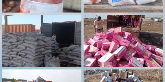 ورفض كمية من سكر كرستال مخالف للمواصفات لتعفن المنتج نتيجة تعرضه للبلل، ورفض واتلاف 162 كرتون مسحوق شراب صناعي بنكهة المانجو مخالف للمواصفات القياسية في فترة الصلاحية، تم الاتلاف في مقلب المنطقة الحرة وبمشاركة جمارك المنطقة الحرة والجهات ذات العلاقة.