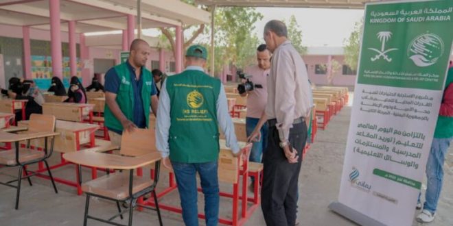 سلّم مركز الملك سلمان للإغاثة والأعمال الإنسانية عبر الشريك المنفذ مؤسسة يماني للتنمية والأعمال الإنسانية، اليوم، ٤٦٤ مقعدًا دراسيًا مزدوجًا ومقاعد ثابته ووسائل ومستلزمات حديثة لتحسين جودة التعليم في 14 مركزًا تعليميًا لمحو الأمية وذوي الإعاقة في محافظة لحج.