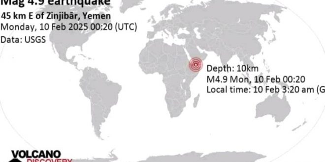 تم فجر اليوم الاثنين تسجيل زلزال بقوة 4.9 درجة على مقياس ريختر بالقرب من زنجبار، أبين، .