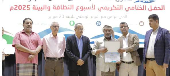 وجاء هذا التكريم في الحفل الختامي التكريمي لفعاليات وأنشطة أسبوع النظافة والبيئة 2025 الذي يقيمه صندوق النظافة والتحسين بساحل حضرموت في شهر فبراير من كل عام تحت شعار “النظافة ثقافة ” وتزامناً مع اليوم الوطني للبيئة 20 فبراير، برعاية من محافظ حضرموت مبخوت مبارك بن ماضي.
