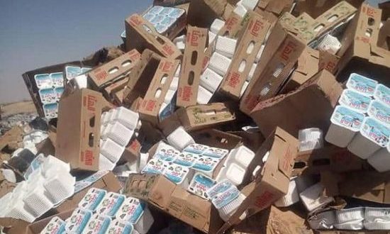 أعلن مكتب الصناعة والتجارة في محافظة شبوة، اليوم الخميس، إتلاف كمية من المواد الغذائية المنتهية الصلاحية، إثر حملة لفرق التفتيش بالتنسيق مع هيئة المواصفات والمقاييس وضبط الجودة.