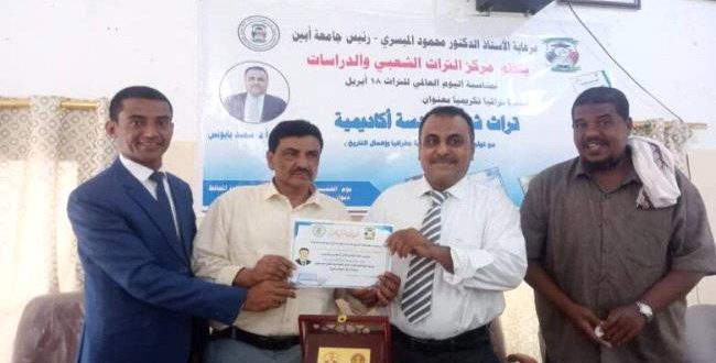 وأشاد القائم بأعمال رئيس منسقية جامعة أبين الدكتور محمد حيدرة سالم بدور الاستاذ الدكتور سعيد بايونس في إحياء الموروث الثقافي وغرس الهوية الثقافية الجنوبية.