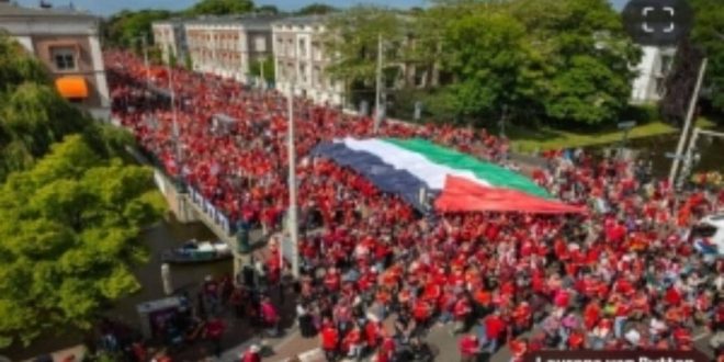 ويُعد هذا الحدث أكبر مظاهرة داعمة لفلسطين في هولندا خلال السنوات الأخيرة، بحسب ما أفادت منظمات حقوقية محلية.