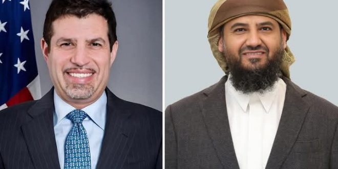 جاء ذلك خلال لقائه، اليوم، عبر اتصال مرئي، بسفير الولايات المتحدة الأمريكية لدى اليمن ستيفن فاجن، حيث جرى مناقشة آفاق تعزيز وتطوير العلاقات الثنائية على كافة الأصعدة، وفي مقدمتها التعاون الأمني والعسكري، ومجالات مكافحة الإرهاب، وخفر السواحل، وتأمين الممرات البحرية الدولية، وردع الهجمات الحوثية الإرهابية على خطوط الملاحة وسفن الشحن التجاري.
