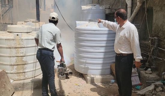 واصل قسم صحة البيئة بمكتب الأشغال العامة في مديرية المنصورة بالعاصمة عدن، اليوم الاثنين، حملة الرش الضبابي والرذاذي.