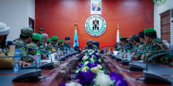 ترأس العميد محسن الوالي، القائد العام لقوات الحزام الأمني، الإثنين اجتماعًا موسعًا ضم قيادة الإدارة العامة للموارد البشرية ومدراء إدارات في الأحزمة الأمنية، وذلك في مقر القيادة العامة بمعسكر الشعب، بحضور العميد عادل الصانبي، مدير الإدارة العامة .