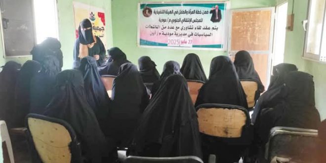 وناقش اللقاء العديدَ من القضايا المتعلقة بالمرأة في المديرية، والمقترحاتَ والأفكارَ التي تعزز دورها الريادي في المجتمع، مع تلخيص تلك الأطروحات لتقديمها إلى الهيئة التنفيذية للانتقالي بالمحافظة.