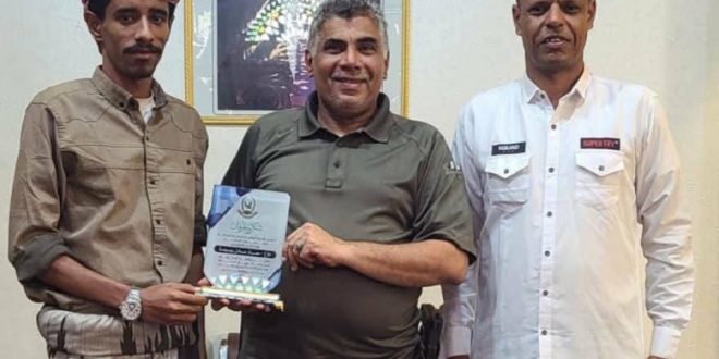 كرّم المدير العام للأمن والشرطة بساحل حضرموت، العميد مطيع سعيد المنهالي، صباح يوم الثلاثاء، الشاب معاذ عادل بوسبعة، بمكتبة، نظير موقفه البطولي في إخماد حريق اندلع داخل أحد السيارات بمدينة المكلا.
