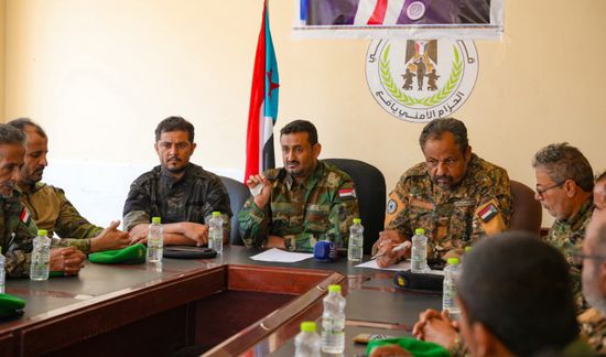 بحث المقدم ديان الشبحي، قائد قوات الحزام الأمني في يافع، يوم الاثنين، مع قيادة الحزام الأمني من مدراء أمن مديريات يافع، التحديات التي تواجه العمل الأمني.