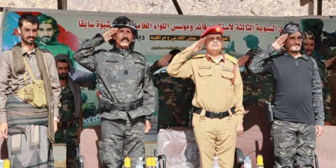 بحضور المتحدث الرسمي للقوات المسلحة الجنوبية، المقدم محمد النقيب، أحيت قيادة اللواء الخامس دفاع شبوة، صباح يوم الأربعاء، الذكرى السنوية الثالثة لاستشهاد مؤسس وقائد اللواء، العميد مفرج بن شليل الحارثي، وعدد من مرافقيه.