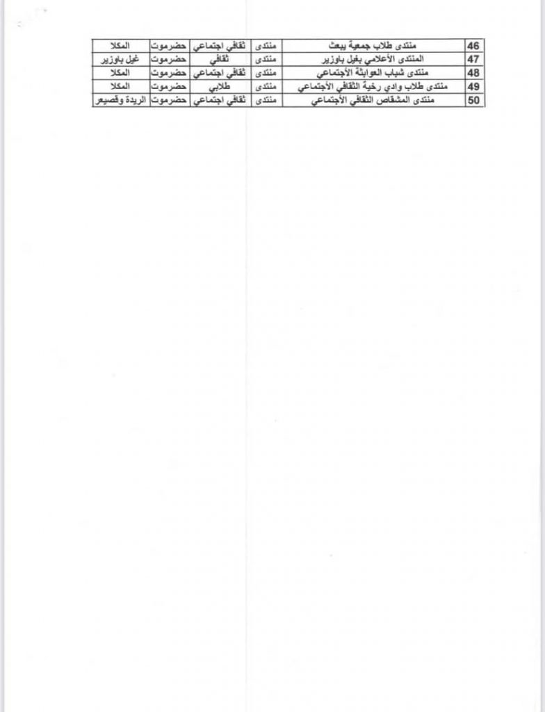 أعلن مكتب وزارة الشؤون الاجتماعية والعمل بساحل حضرموت عن بدء إجراءات تصحيح أوضاع منظمات المجتمع المدني المتعثرة والمنتهية شرعيتها، وذلك استنادًا إلى قانون الجمعيات والاتحادات رقم (1) لسنة 2001م ولائحته التنفيذية رقم (129) لسنة 2004م.