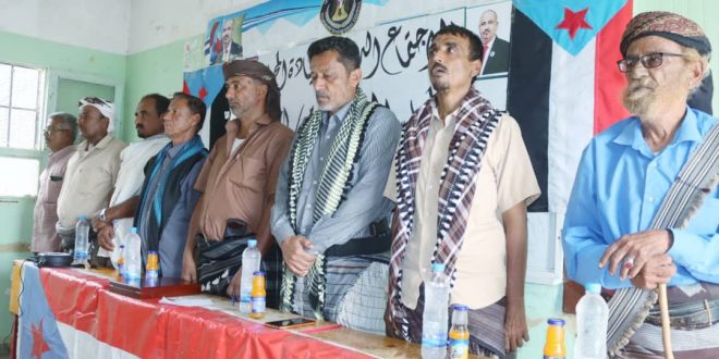 وأستٌهل الإجتماع الذي حضره الاستاذ/حسن منصر غيثان رئيس انتقالي المحافظة السابق، عضو الجمعية الوطنية، والاستاذ /محمد علي لعوش، عضو الجمعية الوطنية، تلاوة آية من الذكر الحڪيـﻤ، ثمَّ وقفة حداد على روح الفقيد المناضل العميد/احمد السراع الحمصي عضو القيادة المحلية، أعقبها أداء النشيد الوطني الجنوبي، ثمَّ أستعرض رئيس الهيئة التنفيذية الاستاذ”مهدي مقبل”كلمةً توجيهية رحب من خلالها بالمناضل الاستاذ”حسن غيثان” على حضوره وتلبيته للدعوة من قبل القيادة المحلية بالمديرية، ومثمناً دوره النضالي والريادي تجاه القضية الجنوبية، وعمله الدؤوب في خدمة المديرية والمحافظة بشكل عام، ومرحّباً إيضاً بالاستاذ/محمد لعوش عضو الجمعية الوطنية للمجلس الانتقالي الجنوبي