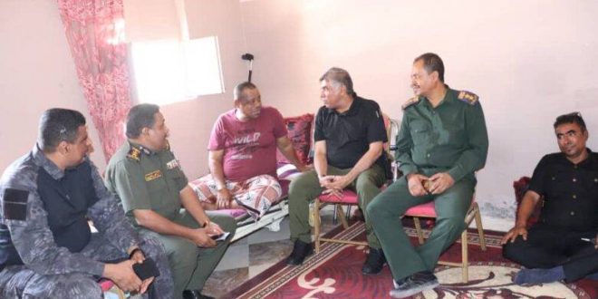 اطمأن المدير العام لأمن وشرطة ساحل حضرموت، العميد مطيع سعيد المنهالي، اليوم بالمكلا، على صحة مساعد المدير العام لشؤون المالية والموارد البشرية مدير مكتب مدير الأمن، الرائد عبدالله سعيد السعدي، بعد أن أجرى عملية إزالة الغضروف الهلالي في رجله اليمنى والتي تكللت بالنجاح.