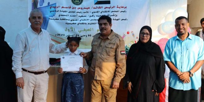 اختتمت إدارة التعليم بالهيئة التنفيذية للقيادة المحلية للمجلس الانتقالي الجنوبي بمحافظة حضرموت، يوم الثلاثاء، المخيم الصيفي الأول للطلاب، الذي أقيم في مقر روضة أسماء بنت أبي بكر لتحفيظ القرآن بمدينة المكلا، برعاية الرئيس القائد عيدروس قاسم الزُبيدي، رئيس المجلس الانتقالي الجنوبي، وحضور فريق التوجيه والرقابة الرئاسي.