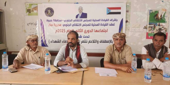 عقدت القيادة المحلية للمجلس الانتقالي الجنوبي في مديرية حبان بمحافظة شبوة، اليوم السبت، اجتماعها الموسع للفصل الثاني من العام الجاري 2025، برئاسة الأستاذ صلاح الشيبة رئيس الهيئة.