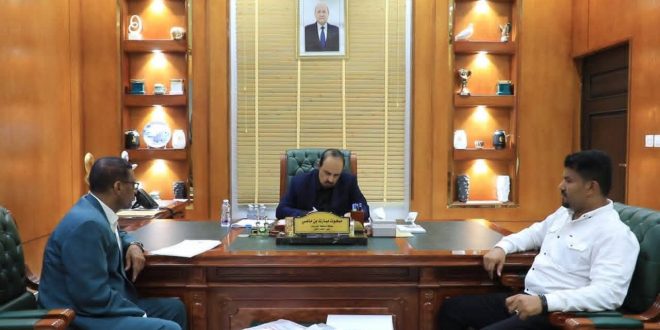 اطلع محافظ حضرموت الاستاذ مبخوت مبارك بن ماضي على الأوضاع العامة لمديرية تريم وسير العمل في المشاريع الخدمية بالمديرية، خلال لقاء جمعه اليوم مع مدير عام المديرية الاستاذ عبدالكريم بابطاط.