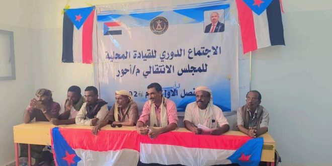 عقدت القيادة المحلية للمجلس الانتقالي الجنوبي بمديرية أحور في محافظة أبين، اليوم الأحد، اجتماعها الموسع للفصل الثاني من العام 2025م، برئاسة هادي الساحمي، رئيس الهيئة التنفيذية.