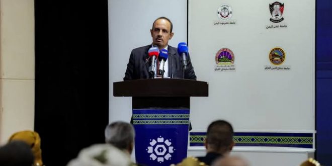 كما ألقى وزير التعليم العالي والبحث العلمي والتعليم الفني والتدريب المهني الدكتور خالد أحمد الوصابي، كلمة عبر تقنية الاتصال المرئي، أعرب فيها عن شكره للاتحاد الأوروبي ومؤسسة صلة للتنمية، معتبرًا المشروع خطوة عملية نحو تطوير المناهج وربطها بالتطبيقات العملية وسوق العمل، بما يعزز فرص الشباب في التخصصات الحيوية، ورافدًا للتطور واعادة الحياة للمرافق التعليمية.