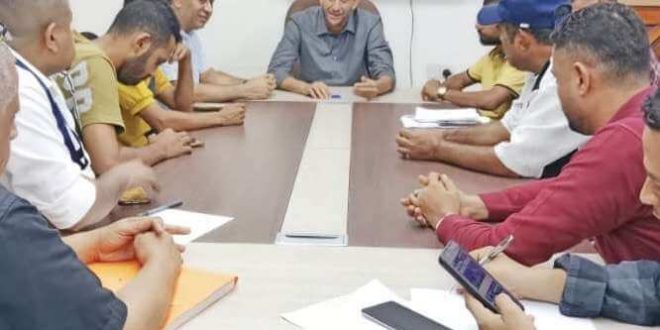 وتناول الاجتماع آليات تنظيم مواعيد ضخ المياه إلى الأحياء السكنية في مديرية المعلا، إضافة إلى مناقشة سبل تحسين جودة الخدمة وضمان وصولها بشكل منتظم وعادل إلى المواطنين.