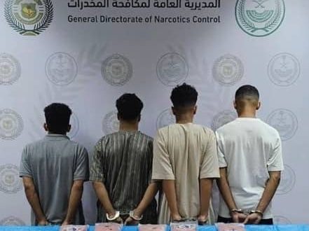 أعلنت المديرية العامة لمكافحة المخدرات في السعودية عن ضبط أربعة مقيمين يمنيين في مدينة جدة بحوزتهم 11 كيلوغرامًا من مادة الحشيش المخدر، أثناء عملية أمنية لمكافحة الترويج للمخدرات. وتم إيقاف المتهمين واتخاذ الإجراءات النظامية بحقهم تمهيدًا لإحالتهم إلى النيابة العامة.