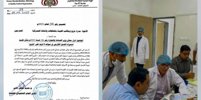 الجدير بالذكر ان هذا الاجراء يأتي بعد التعميم الذي اصدرته الهيئة رقم (38) للعام 2025م، تنفيذا لقرار معالي وزير الصناعة والتجارة رئيس مجلس ادارة الهيئة بشأن تقييد استيراد العسل الخارجي في عبوات لا تزيد عن لترين، حتى لا يتم خلطها بالعسل اليمني ذات الجودة العالية، وتأتي هذه الاجراءات حرصا من الهيئة بالتنسيق مع كافة الجهات المعنية كوزارة الزراعة والري والثروة السمكية، لحماية المنتج المحلي وتعزيز جودته.