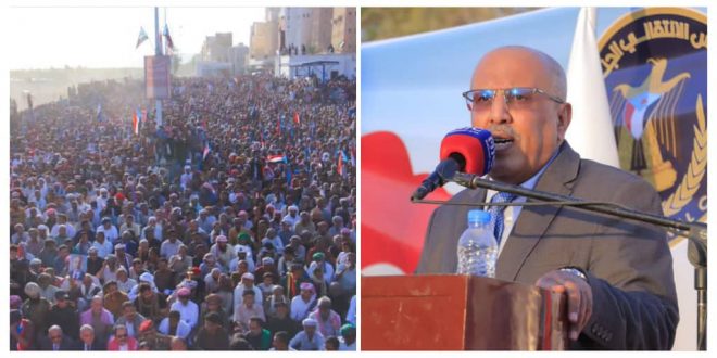ونقول لكل القوى القوى السياسية في حضرموت بمختلف تصنيفاتها نحن نتفق على حقوق حضرموت في إطار دولة الجنوب ومستعددين في المجلس الانتقالي ولدينا الميثاق الوطني الجنوبي الذي حدد معالم المشروع الجنوبي ومن له استعداد للحوار والنقاش على هذه القاعدة فنحن نرحب به ومستعدين أن نتعاطى مع كل ما يُطرح، ولكن أي محاولة للإلتفاف والعودة الى مايسمى باليمن الإتحادي أو إعادة انتاج الوحدة بصيغة أخرى نقول له هذا ليس مشروعنا ولانقبل به.