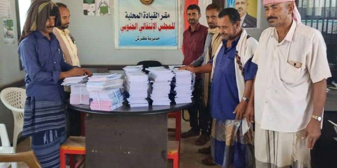 قدمت الهيئة التنفيذية للقيادة المحلية للمجلس الانتقالي الجنوبي في مديرية كرش بمحافظة لحج، اليوم الثلاثاء، كتبًا مدرسية لعدد من مدارس المديرية، دعمًا للعملية التعليمية.