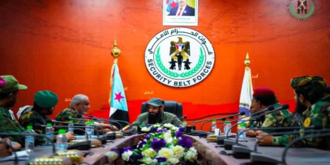 ترأس القائد العام لقوات الحزام الأمني، العميد محسن بن عبد الله الوالي، يوم أمس الخميس، اجتماعًا استثنائيًا بقادة كتائب احتياط القائد، وذلك في معسكر الشعب بالعاصمة عدن.