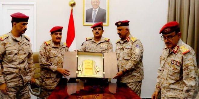 كرّم مدير دائرة شؤون الضباط العميد الركن علي محمد الحوري، ونائبه العميد علي سعيد عبيد، في العاصمة عدن، معالي وزير الدفاع الفريق الركن الدكتور محسن محمد الداعري، ومنحاه درع الوفاء والعرفان تقديرًا لجهوده الوطنية المخلصة في تطوير المؤسسة العسكرية، وتعزيز التكامل الإداري وتفانيه في خدمة الوطن واهتمامه المستمر بشؤون الضباط وأوضاع منتسبي القوات المسلحة وتفانيه في خدمة الوطن.