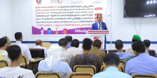 وقال العامري إن الحديث عن السلامة الدوائية يعني الحديث عن الإنسان نفسه، عن صحته وبيئته، وكيف نضمن له أن يعيش بأمان وجودة حياة عالية من خلال دواء آمن وفعّال، مشيدًا بالجهود التي تبذلها الجهات الصحية في وادي حضرموت لتطوير القطاع الدوائي والرقابة عليه.