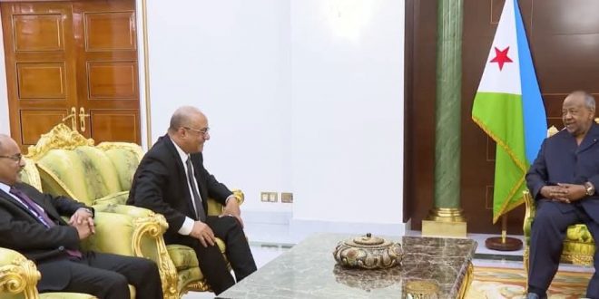 استقبل فخامة الرئيس، إسماعيل عمر جيله، رئيس جمهورية جيبوتي الشقيقة، اليوم، وزير التخطيط والتعاون الدولي، القائم بأعمال وزير الاتصالات وتقنية المعلومات، الدكتور واعد باذيب.