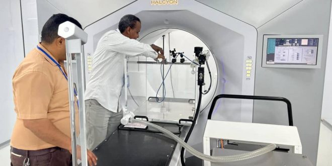وبعد استكمال أعمال تركيب القطعة ودخول الجهاز الخدمة سيتم التواصل مع المرضى من قبل إدارة المركز لتقديم هذه الخدمة المجانية لمرضى السرطان.