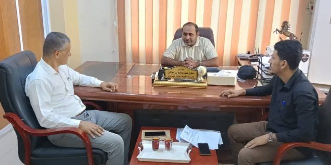 وخلال اللقاء جرى استعراضد جملة من القضايا ذات الصلة بالجوانب الإدارية والفنية، واستكمال مشروع تحسين الشبكة العامة للمديرية، وذلك تنفيذاً لتوجيهات الأستاذ مبخوت مبارك بن ماضي محافظ د حضرموت، الرامية إلى تلبية احتياجات المديرية، وذلك في سياق المتابعة المستمرة التي كان آخرها لقاء المحافظ بمدير في الثاني من نوفمبر الجاري.