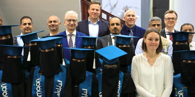 كرّم محافظ حضرموت الأستاذ مبخوت مبارك بن ماضي، ومعه سفير جمهورية ألمانيا الأتحادية لدى اليمن توماس شنايدر، اليوم، أوائل الخريجات في “مشروع تأهيل قابلات تقنيات”، الذي استهدف 67 قابلة من محافظات حضرموت وشبوة والمهرة، واستمر الدراسة فيه لمدة ثلاث سنوات في المعاهد الصحية بالمحافظات المستهدفة للحصول على شهادة الدبلوم، بتمويل من بنك التنمية الألماني ومؤسسة يمان للتنمية الصحية والاجتماعية.