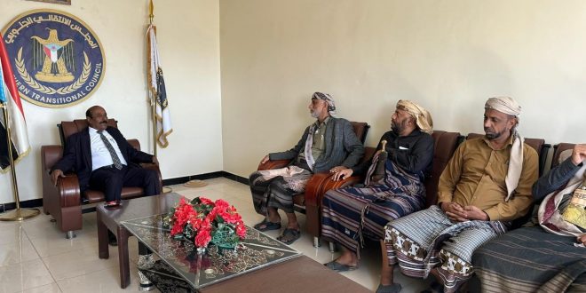 التقى رئيس الهيئة التنفيذية للقيادة المحلية للمجلس الانتقالي الجنوبي بمحافظة شبوة، الشيخ لحمر علي لسود، امس الأربعاء، وكيل محافظة شبوة المساعد، عضو مجلس المستشارين للمجلس الانتقالي الجنوبي، الشيخ علي محسن السليماني.