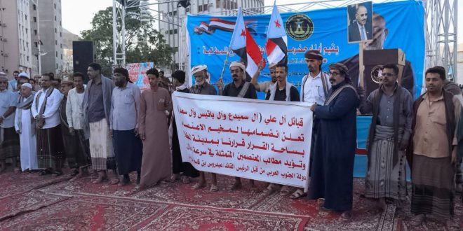 أعلنت قبائل آل علي النعماني (آل سميدع، وآل باتيس، وآل بن سعد)، يتقدمهم المقدم سالم مبارك بن سميدع، عصر اليوم الأحد، انضمامها إلى ساحة الاعتصام بمدينة المكلا، تأكيدًا لموقفها الداعم لمطالب أبناء حضرموت والجنوب عامة.