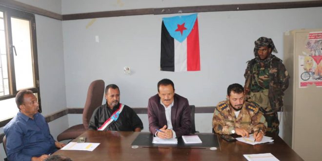 •تعبر السلطة المحلية ومكتبها التنفيذي عن تأييدها لإرادة شعب الجنوب في كل الساحات و الميادين الجنوبية والمطالبة للقيادة السياسية الجنوبية متمثلة بالأخ الرئيس عيدروس بن قاسم الزبيدي-رئيس المجلس الانتقالي الجنوبي-القائد الأعلى للقوات المسلحة الجنوبية الإستجابة لمطلب شعب الجنوب وإعلان “دولة الجنوب العربي”كاملة السيادة بحدودها ما قبل عام 90م للخلاص من ويلات سياسات الاحتلال اليمني واجتثاثها من أرض الجنوب.