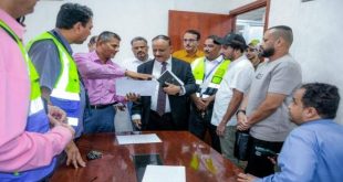 عدن (حضارم اليوم) خاص تفقد معالي وزير النقل، الدكتور عبدالسلام صالح حُميد، اليوم، سير العمل بشركة عدن لتطوير الموانئ _ ميناء الحاويات “كالتكس” ومستوى الانضباط الوظيفي في الإدارات العامة والأقسام بالميناء، عقب انتهاء إجازة عيد الاضحى المبارك. واستمع الوزير حُميد،خلال جولته التفقدية،من القائمين على الادارات، والذي شملت الموارد البشرية والعمليات …
