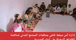 شبوة (حضارم اليوم) خاص في إطار العمل المشترك بين الأجهزة الأمنية ومنظمات المجتمع المدني، التقى مدير شرطة مديرية ميفعة، المقدم ناصر رويس العولقي، ونائبه النقيب فهمي مقبل ناصر لكرش باعوضة ومدير البحث الجنائي بالمدير عبدالعزيز عوض لصحر اليوم الجمعة، بمنظمات المجتمع المدني الممثلة بعقال الحارات ومشايخ وأعيان ووجهاء المديرية لمناقشة …